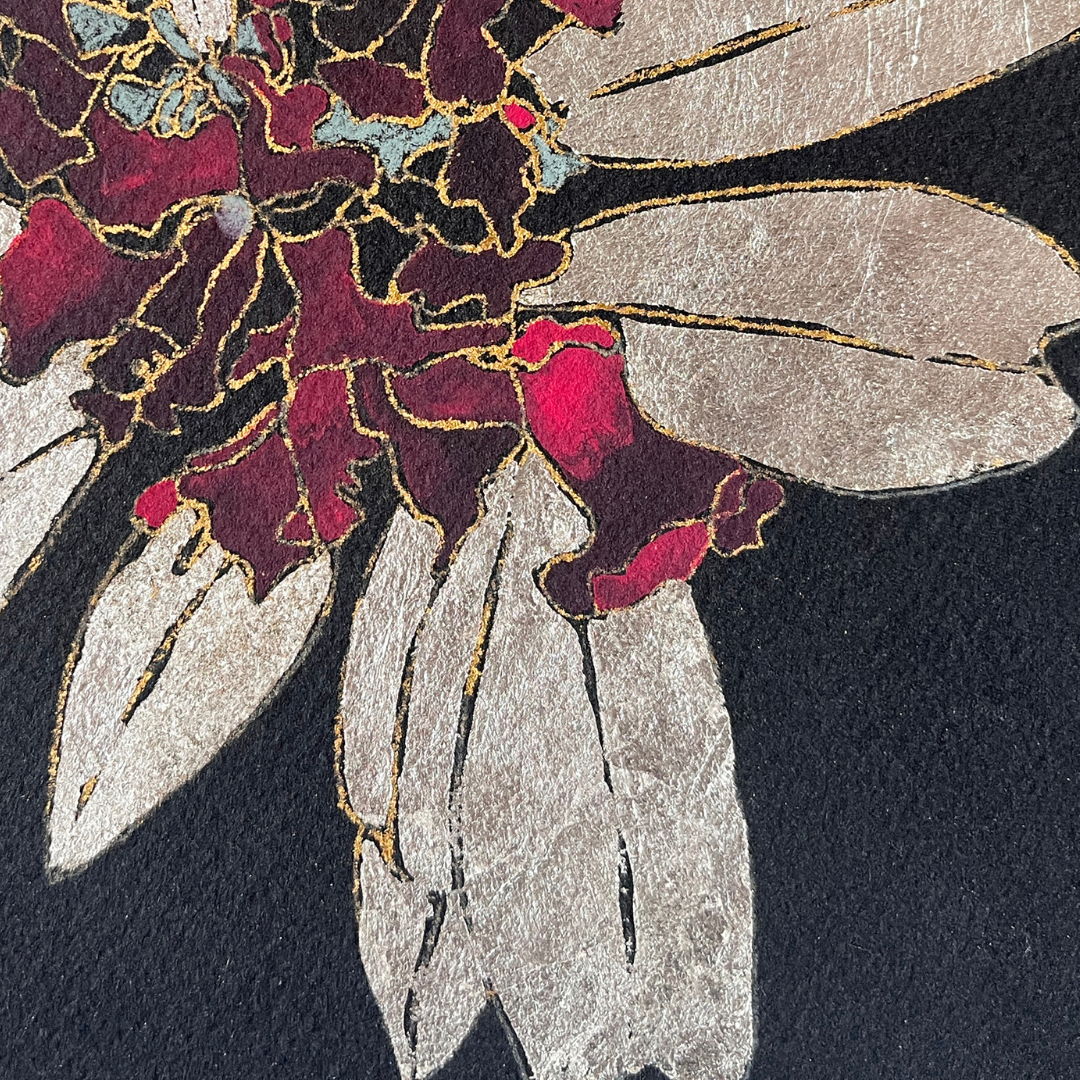 Medium: Gold, silver leaf and Luminance permanent color pencil on colored Paper