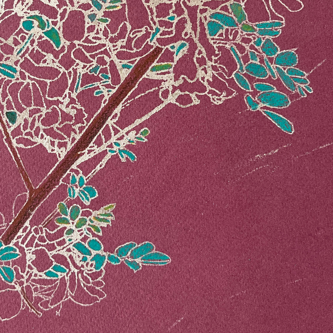 Medium: Silver leaf and Luminance permanent color pencil on colored Paper