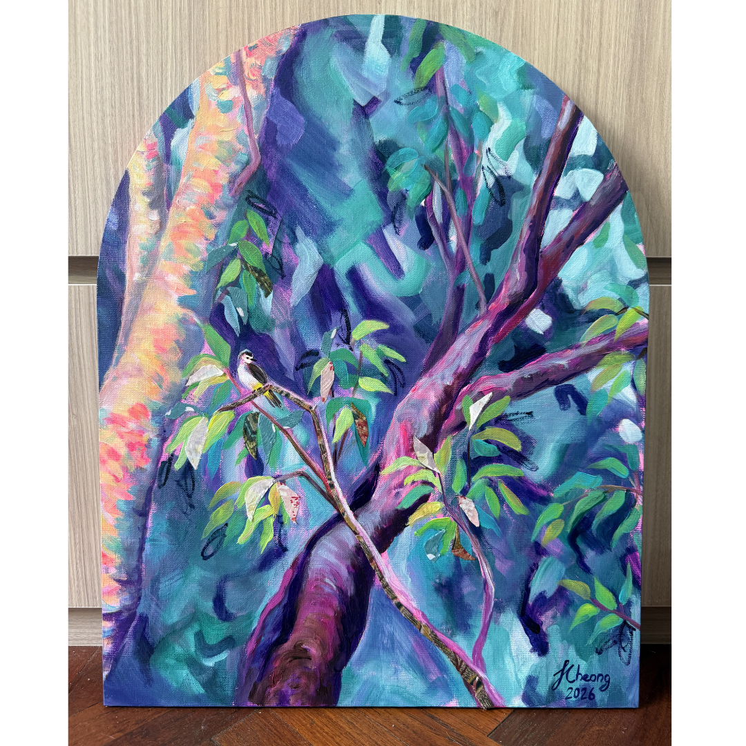 Jillian Cheong is a Singapore-based artist whose practice centres on themes of hope, resilience and quiet transformation. Working primarily in acrylic, she draws inspiration from nature, using light, colour and organic forms as both imagery and metaphor. Jillian also incorporates fabric collage using discarded textiles, introducing texture and a sense of material memory into her paintings. Her works celebrate the beauty of what remains and the possibility of finding meaning in what is often overlooked.
