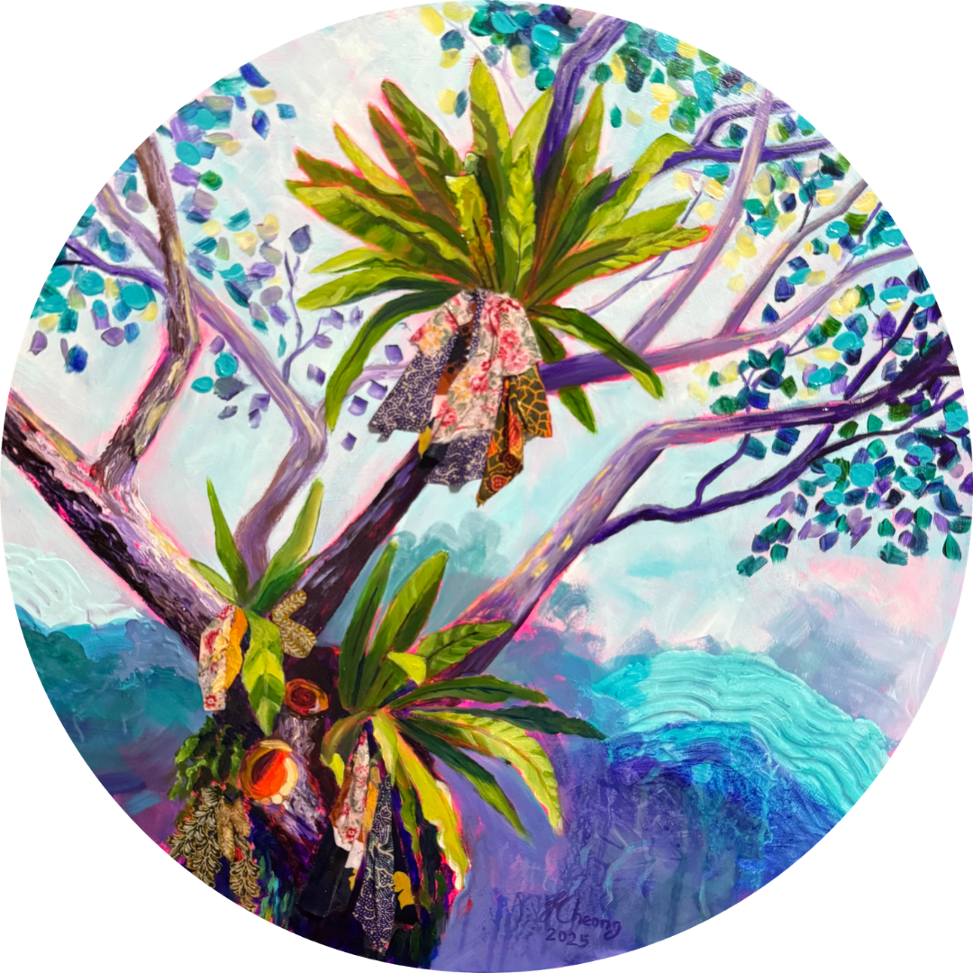 Jillian Cheong is a Singapore-based artist whose practice centres on themes of hope, resilience and quiet transformation. Working primarily in acrylic, she draws inspiration from nature, using light, colour and organic forms as both imagery and metaphor. Jillian also incorporates fabric collage using discarded textiles, introducing texture and a sense of material memory into her paintings. Her works celebrate the beauty of what remains and the possibility of finding meaning in what is often overlooked.