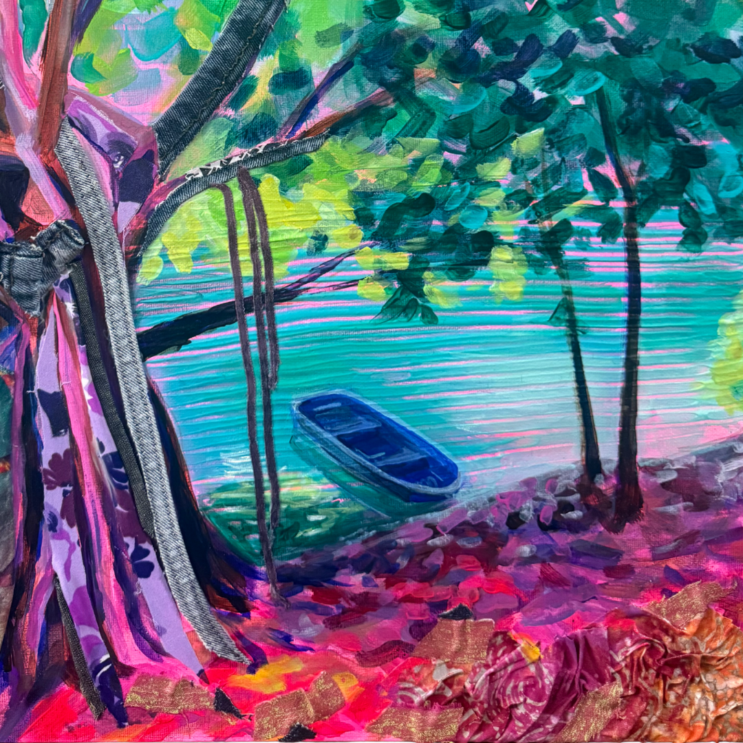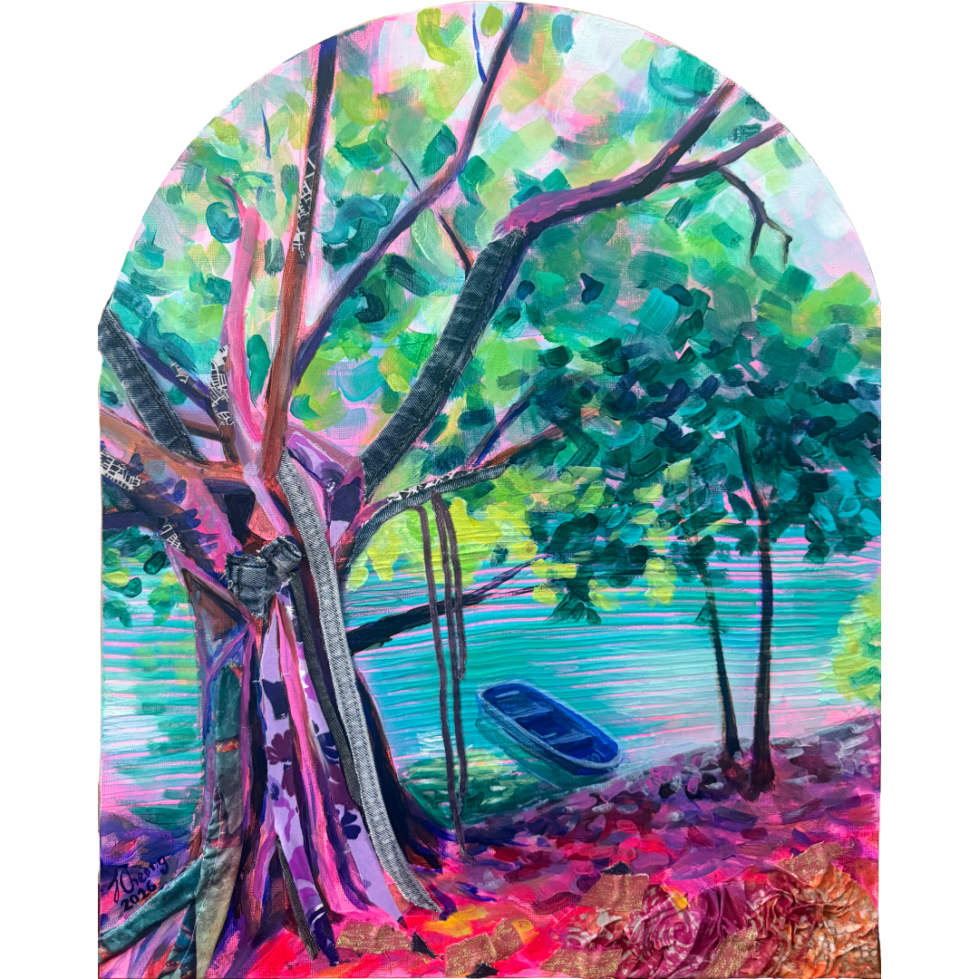 Jillian Cheong is a Singapore-based artist whose practice centres on themes of hope, resilience and quiet transformation. Working primarily in acrylic, she draws inspiration from nature, using light, colour and organic forms as both imagery and metaphor. Jillian also incorporates fabric collage using discarded textiles, introducing texture and a sense of material memory into her paintings. Her works celebrate the beauty of what remains and the possibility of finding meaning in what is often overlooked.